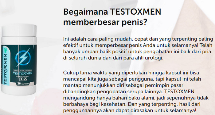 Alat unik ini akan membantu Anda merasa seperti raja dalam hubungan cinta. Dan wanita hanya akan menjadi gila dengan senang di tempat tidur dengan pasangan seperti itu. Dalam artikel dan situs resmi ini Anda akan mempelajari semua tentang apa itu TestoXmen, apa kelebihannya dan apa yang membedakannya dari obat lain untuk potensi di Indonesia.