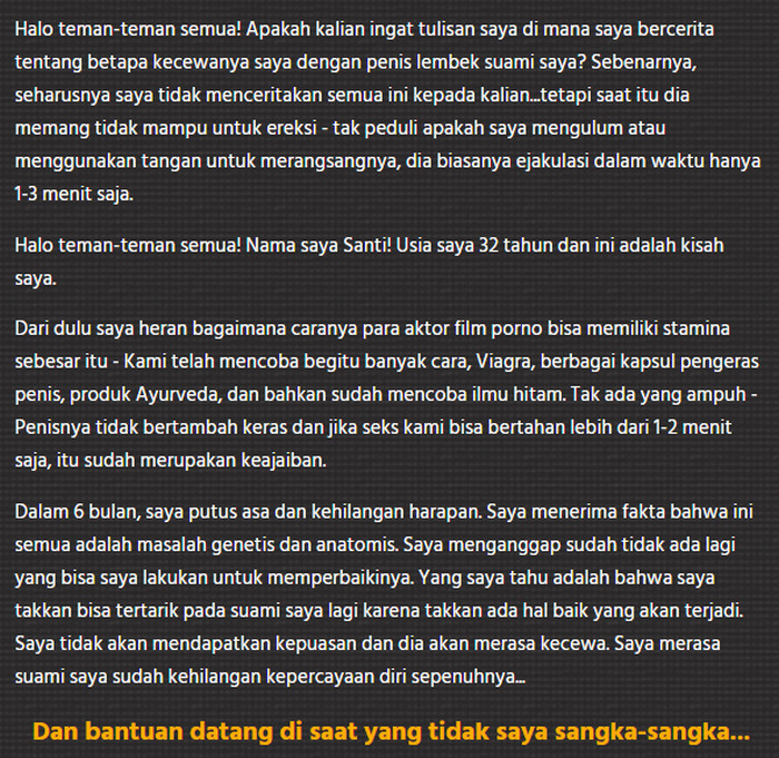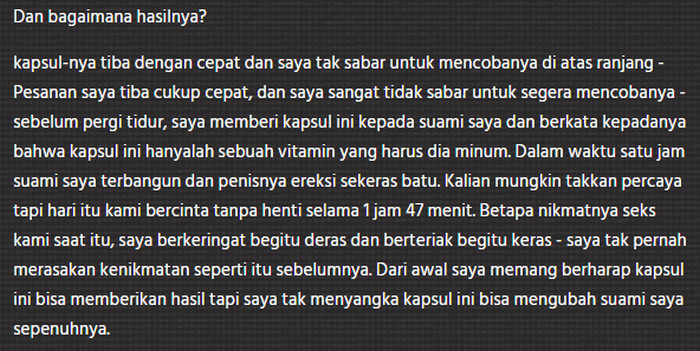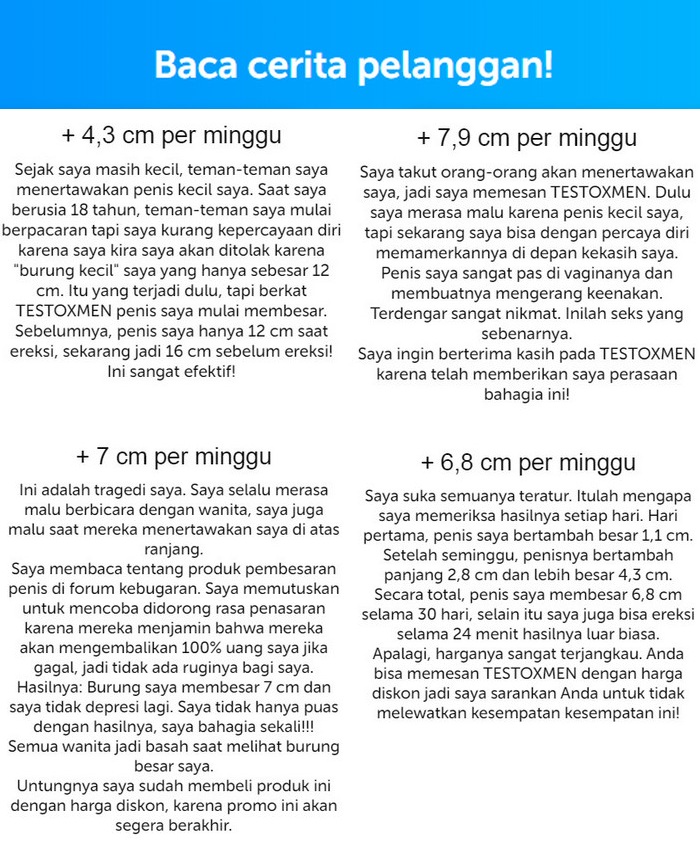 - Sudah di minggu ke-2 penggunaan, Anda bisa mengukur pen. Hasilnya akan senang. 1,5 cm pertama sudah menjadi milik Anda! Selama ini Anda akan merasa percaya diri, karena ereksi akan menjadi jauh lebih kuat. Sensitivitas pen akan menjadi lebih, Anda akan mengalami orgasme yang eksplosif, yang sebelumnya tidak pernah dialami sebelum mengoleskan krim.